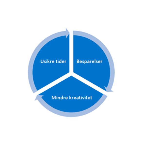 Også i forhold til andre lande, vi normalt sammenligner os med, har vi en tendens til at forlænge kriserne unødigt i Danmark, hvilket et studie om innovation på CBS fra 2020 også viste. Det er naturligvis ærgerligt, men for den enkelte virksomhed er der heldigvis måder at skyde genvej på gennem kriserne. Det handler om at prioritere et rum til kreativitet, hvilket kan være svært at se logikken i, når man er allermest presset på indtjeningen. Man taler også om åben innovation; altså hvordan du med inddragelse af eksterne partnere kan iværksætte de tiltag, der skal til for at skabe merværdi i forhold til virksomhedens kerneopgave.