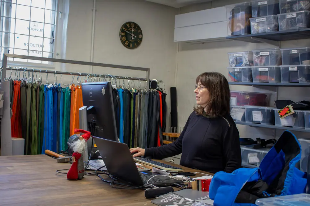 “Alt det, vi producerer hos REWORK, er med bæredygtighed i fokus. Det kan for eksempel være tøj og tasker lavet af genbrugs- eller restmaterialer. Og så laver vi også en del reparationer og rådgivning i ansvarlig tøjproduktion,” siger Fleur Pearson.