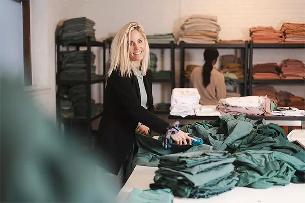 De brugbare stykker stof upcycles til nye produkter i tidløse designs som tasker, sendelinned, håndklæder og meget mere. På den måde udnyttes materialerne til fulde. Som virksomheden selv siger: Sammen kan vi lukke kredsløbet.