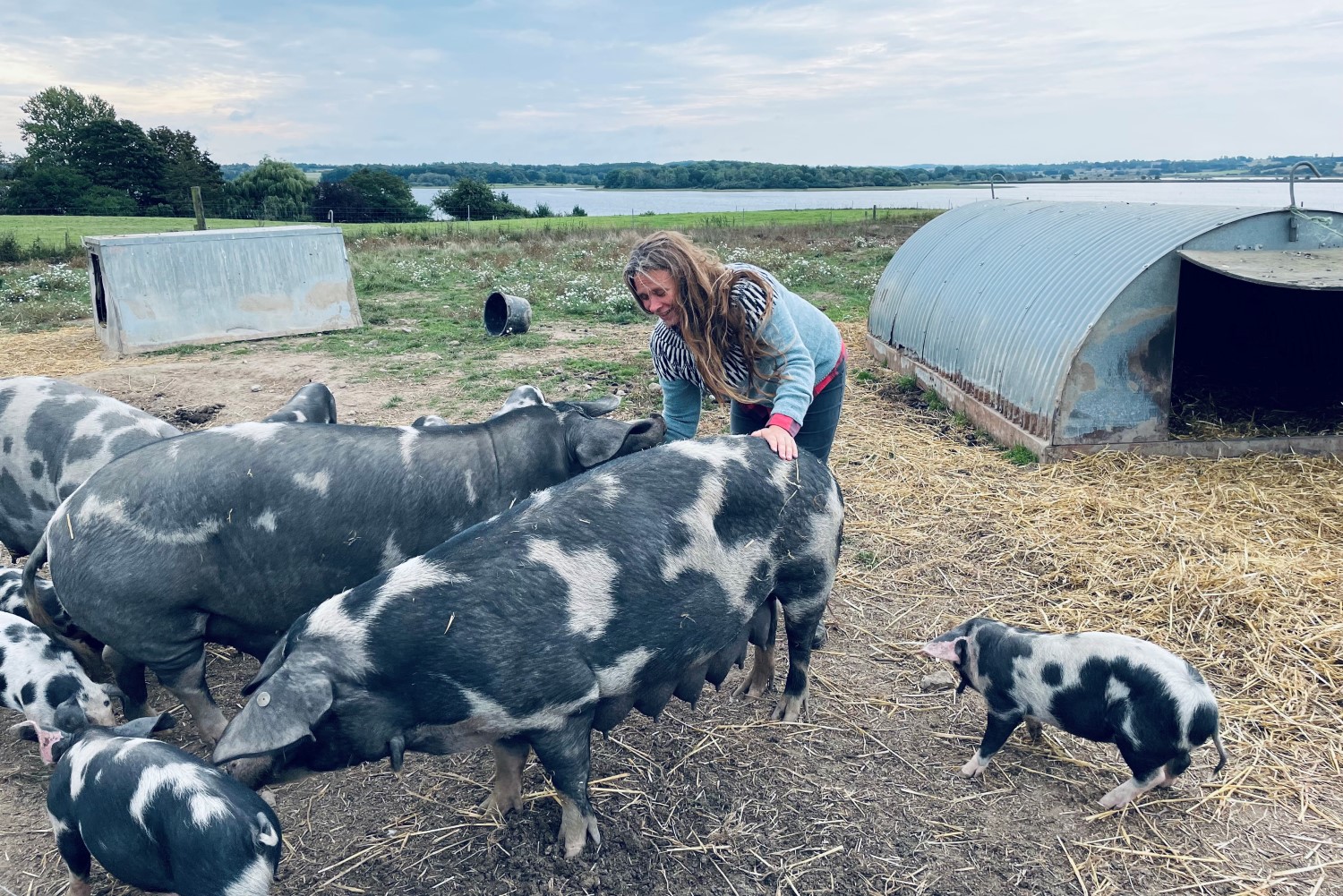 På Birthesminde avler Maria Bojsen blandet andet ungarske uldgrise, som man kan opleve i levende live - eller smage på i den nye café.