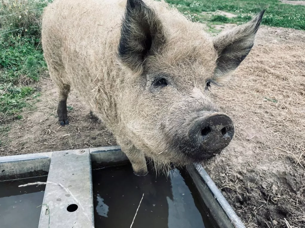 På Birthesminde avler Maria Bojsen blandet andet ungarske uldgrise, som man kan opleve i levende live - eller smage på i den nye café.